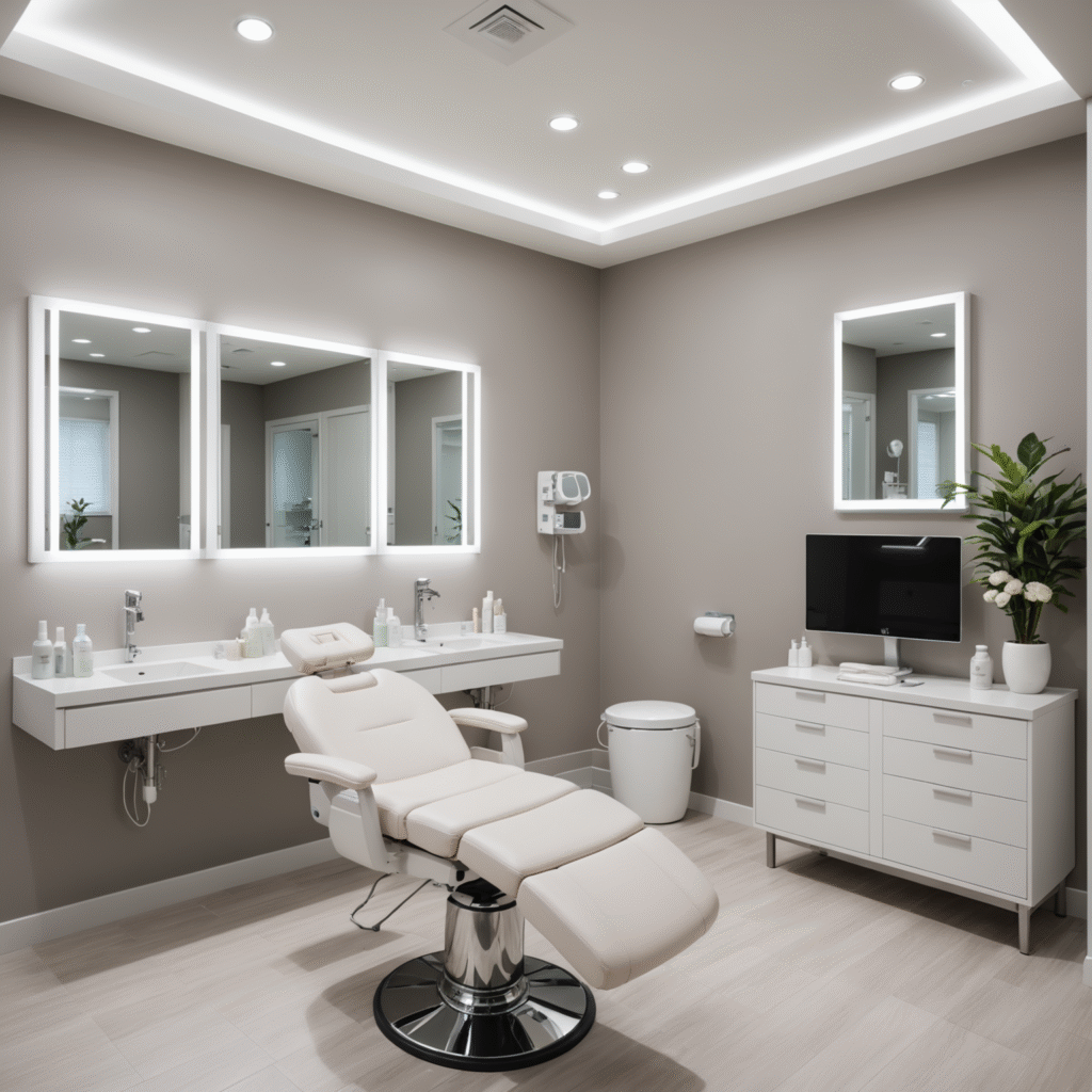 Below is an example of a typical HydraFacial treatment room setup, emphasizing the clinic’s professional and sterile environment that ensures a comfortable and safe experience.